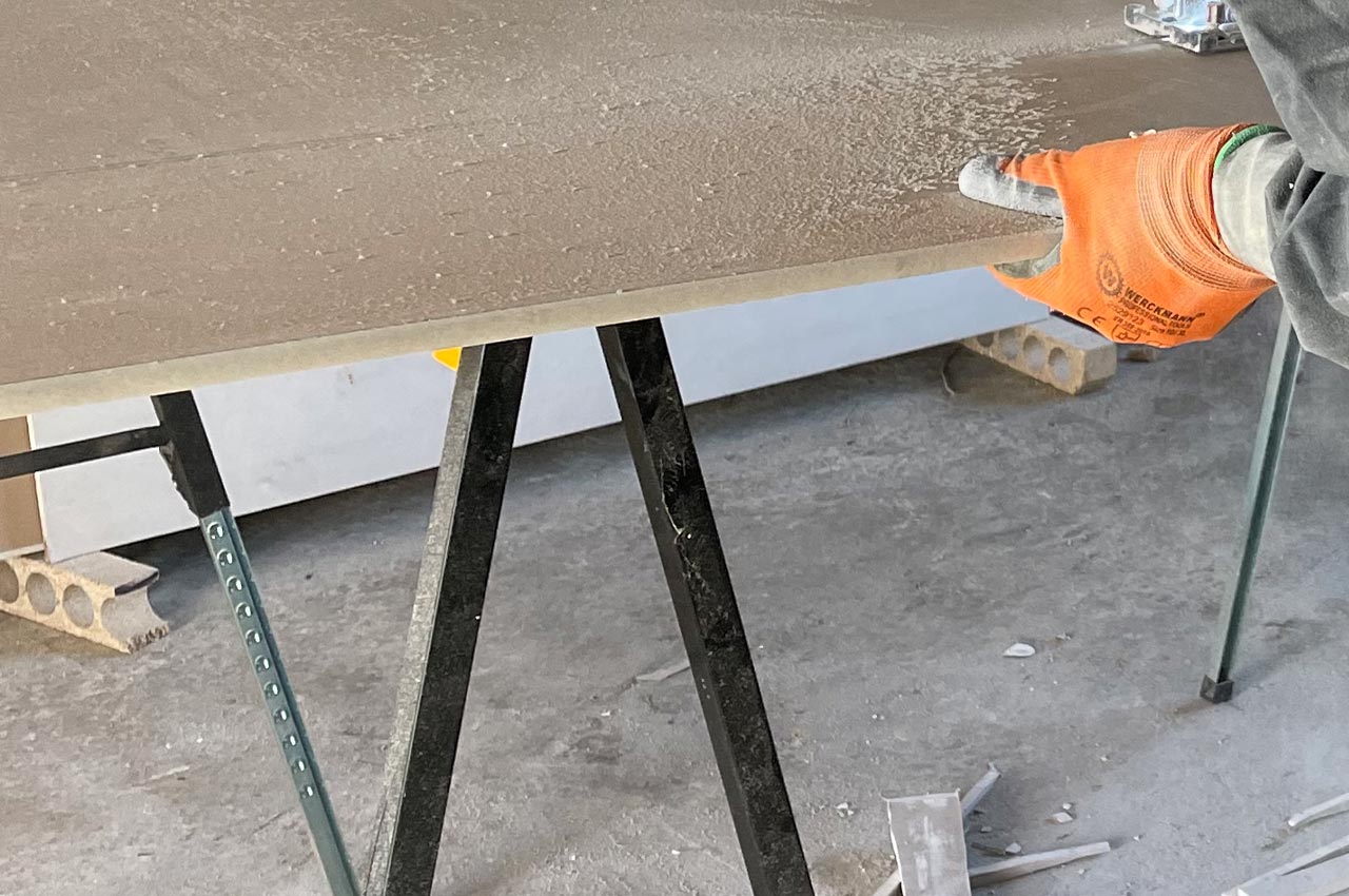 - Découpe des plaques de placo aux dimensions nécessaires à l’aide d’un cutter, d’une règle.